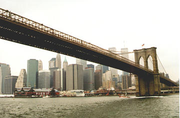 Eines der schönsten Bauwerken in N.Y. ist die Brooklyn Bridge . Sie sieht geradezu mittelalterlich aus mit den beiden steinernen Pfeilern.