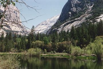 Wir mußten über den fast 3000 Meter ü.d.M. hohen Sonora Pass fahren. Dann kamen wir am Yosemite Nationalpark an. Die Amerikaner sagen dazu "its like Schwarzwald". Landschaftlich sehr schön und bekannt für seine faszinierenden Wasserfälle. Nach einem schönen Spaziergang durch den Park kamen wir am Mirror Lake an.